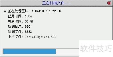6、 下一步,软件会自动扫描文件系统7?文件系统扫描完毕后会自动扫描文件?