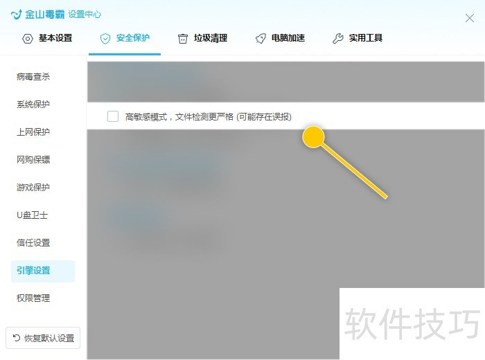金山毒霸青春版怎么启用高敏感模式严格检测文件
