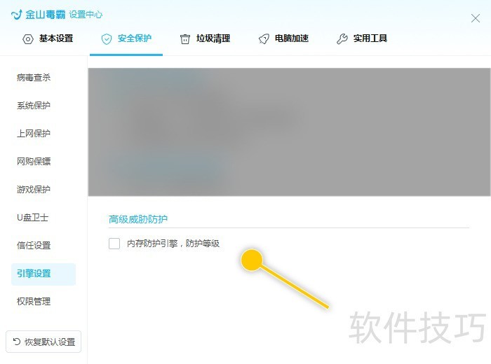 金山毒霸青春版如何调整内存防护引擎的防护等级