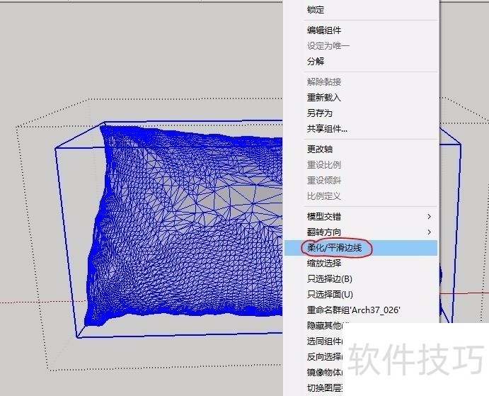 6、 双击进入模型,右击选择“柔化/平滑边线”