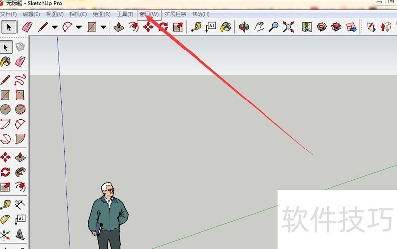 1、 安装好(草图大师2015)之后,双击打开软件,找到菜单栏-窗口,点击如图:
