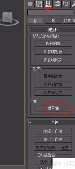 3、 点击右边工具栏“层次-重置轴”