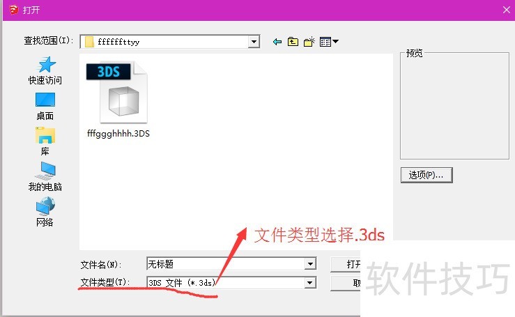 5、 “打开”sketchup,点击“导入”,文件类型选择“.3ds”,选择要导入模型“打开”