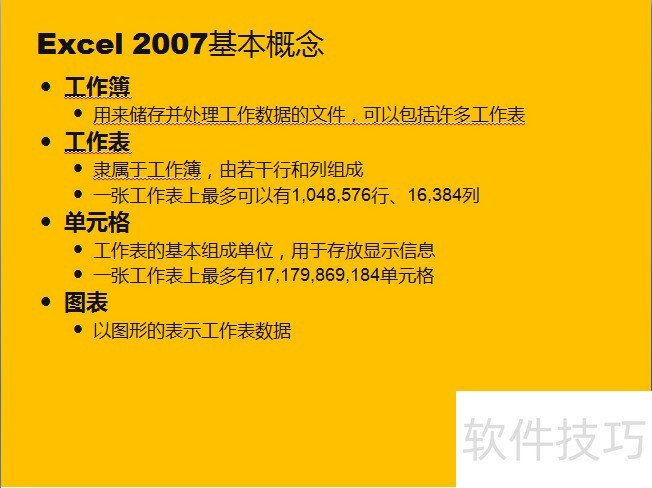2、 Excel 2007基本概念