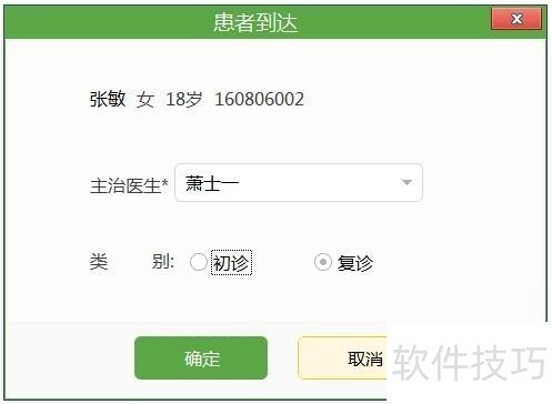3、 收费:点击会进入该患者的收费信息页面,可对其进行收费到达:点击为患者选择主治医生,点击确定后,确定患者已到达。确定患者到达时,图标颜色会变浅病历:当病历情况为未填写时,可点击该图标,跳转至该患者的病历信息页,进入病历填写