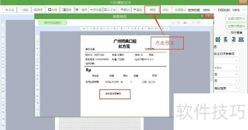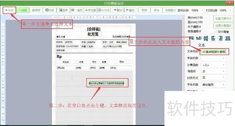 4、 在处方打印设置界面点击设计模板。例如:如何在打印纸张上添加新的医嘱,或者注意事项.