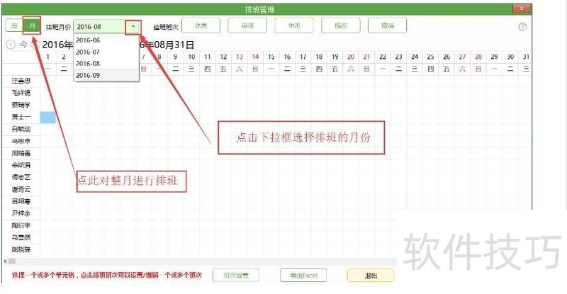 2、 可以按周排班也可以按月排班。以按月排班为例,进行排班设置。首先选择排班的月份。