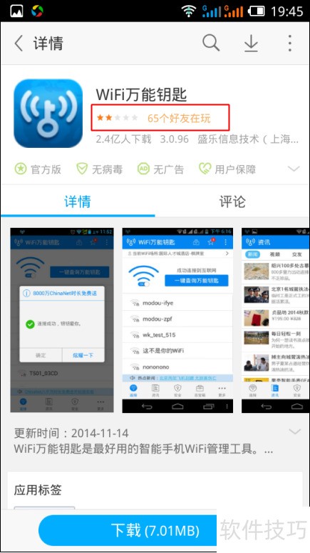 6、 进入应用下载详情页面也可以看到好友在玩,如果你下载了大家都在玩的应用,说不定你的好友也会看到你在玩哦!: