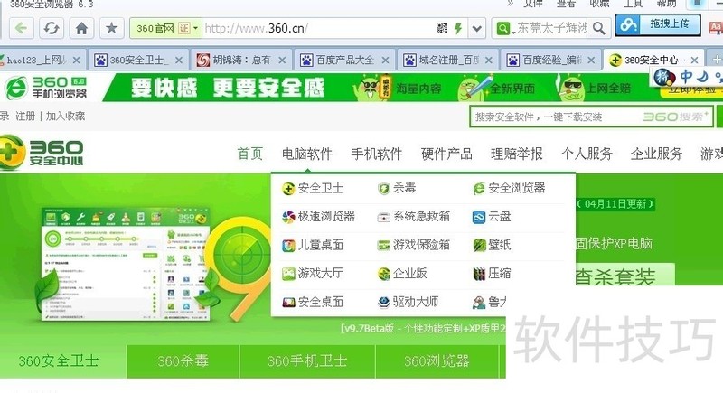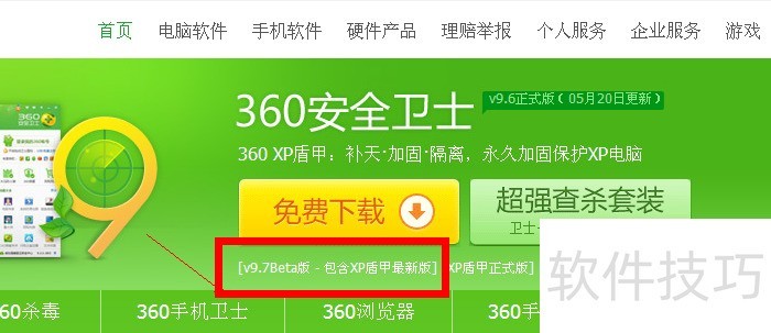 2、 在360官网首页上方,找到【最新版360xp盾甲】