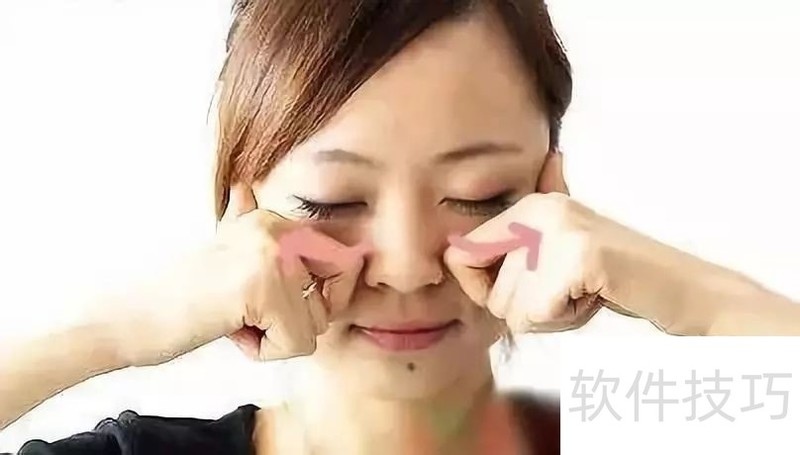 4、 按太阳穴,轮刮眼眶。先用食指指腹按在太阳穴上,再将食指弯曲,用食指第二节内侧轻轻刮上下眼眶,都是从内向外刮,先上眼眶,再是下眼眶,刮一圈为一拍,共八八六十四拍。