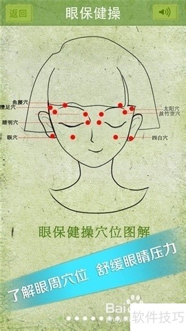2、 选择“做操”,了解眼睛周围穴位图,舒缓眼睛压力。