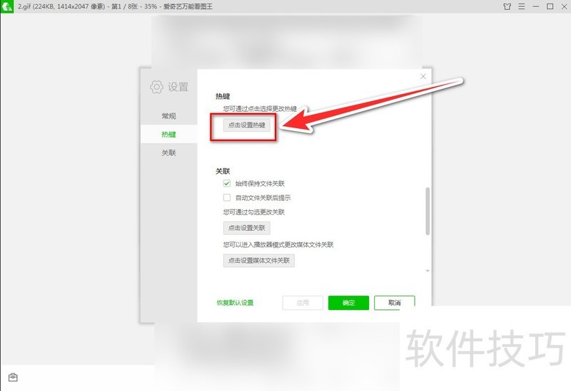 4、 在“热键”窗口中,点击“点击设置热键”按钮。