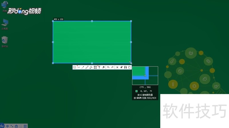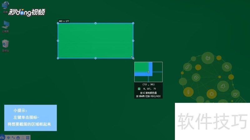 1、 首先在任务栏左键单击图标,将想要截图的区域框起来。