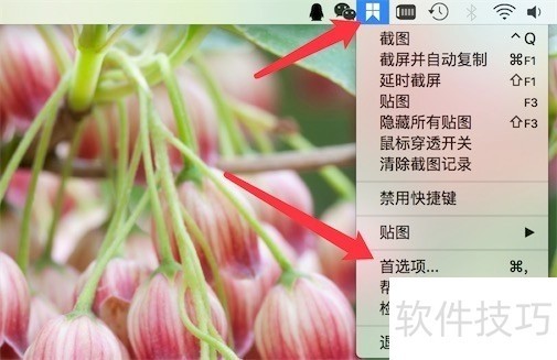 1、 点击首选项鼠标点击snipaste然后点击首选项。攀彩