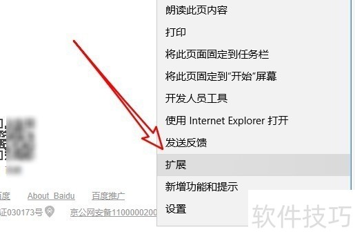 2、 然后在弹出的edge浏览器下拉菜单中,我们点击“扩展”的菜单项。