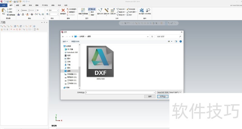 3、 第一种打开方法是点击菜单栏左上角的“文件”-“开启”,然后选择要打开的DXF文件。