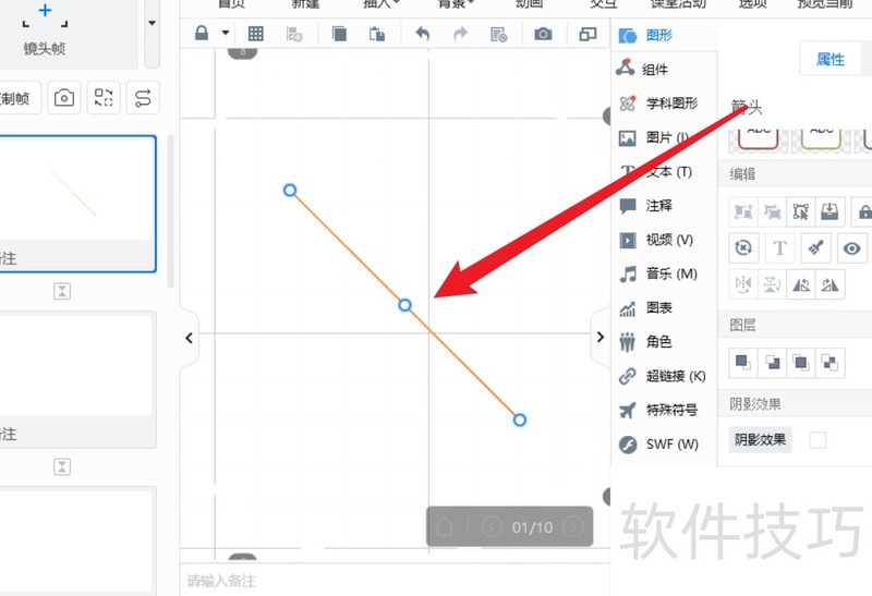3、 在场景中绘制一个直线箭头。此时可以看出因为箭头太小,所以效果不明显。