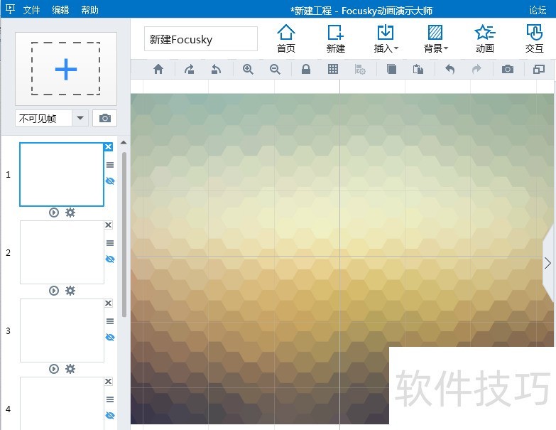 1、 首先在FOCUSKY动画演示大师中新建工程文件。