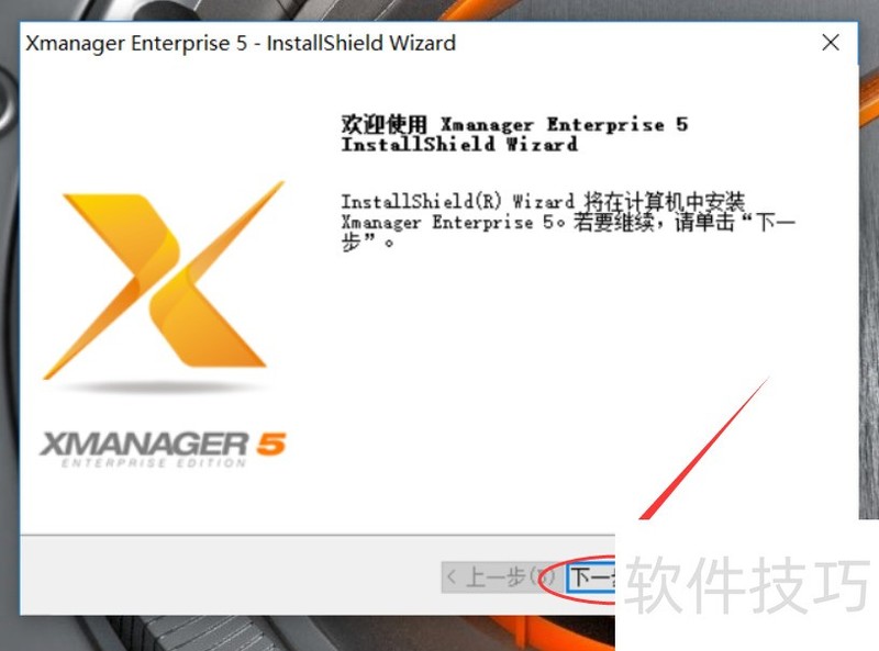 1、 双击打开Xmanager的安装软件,然后在安装界面上直接点击下一步,如下图所示。