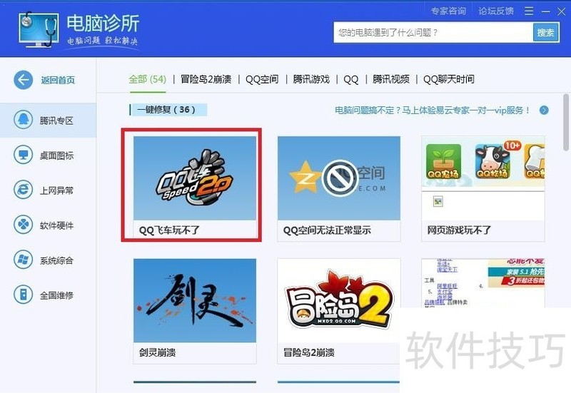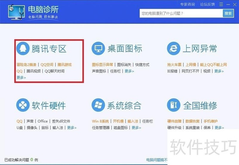 4、 在电脑诊所界面找到“腾讯专区”选项。