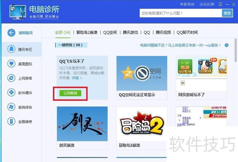 6、 在QQ飞车玩不了中单击“立即修复”按钮。