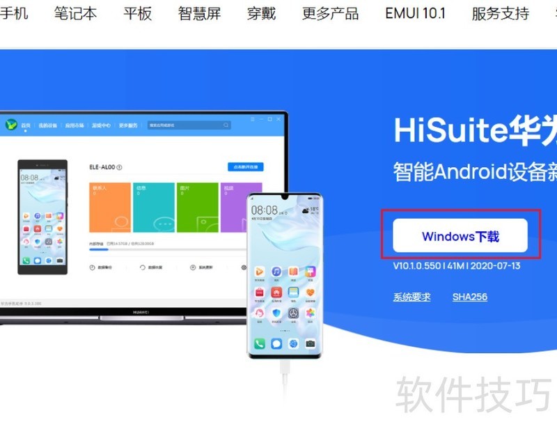 6、 找到解压后的文件夹,点击【HiSuite_10.1.0.550.exe】