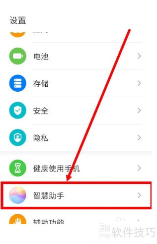 1、 打开手机设置,然后在设置列表中选择“智慧助手”。