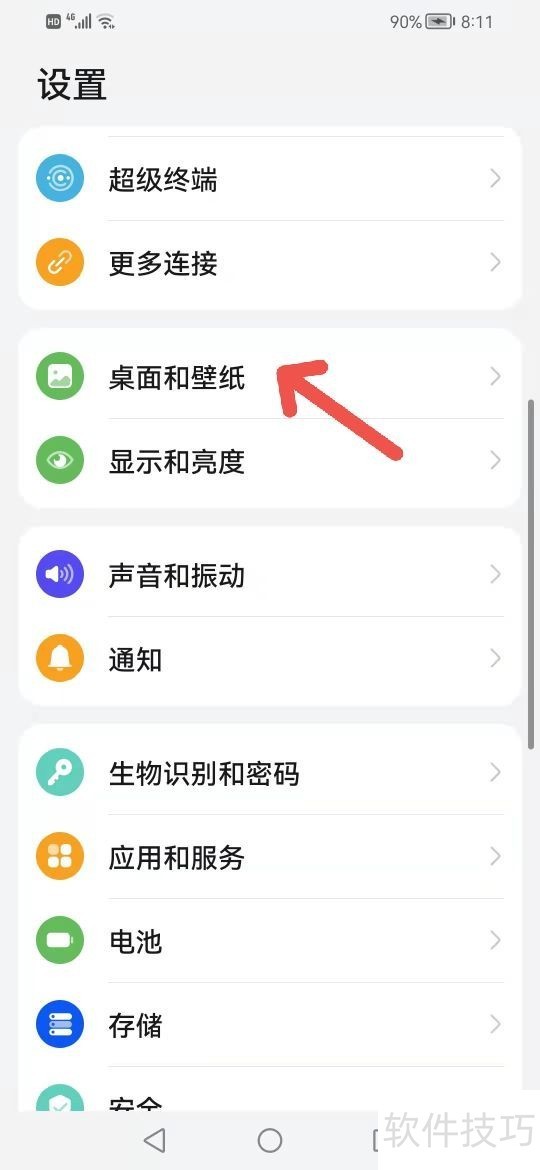 1、 点击桌面和壁纸进入手机设置界面后,点击桌面和壁纸。