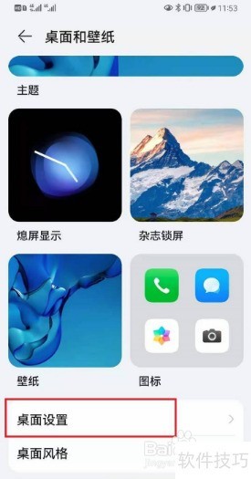2、 点击桌面设置进入桌面和壁纸界面后,点击桌面设置。