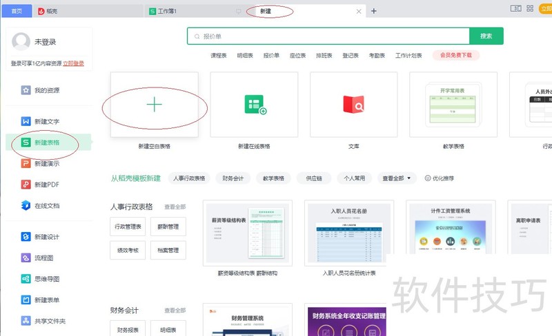 2、 点击"新建空白表格"图标