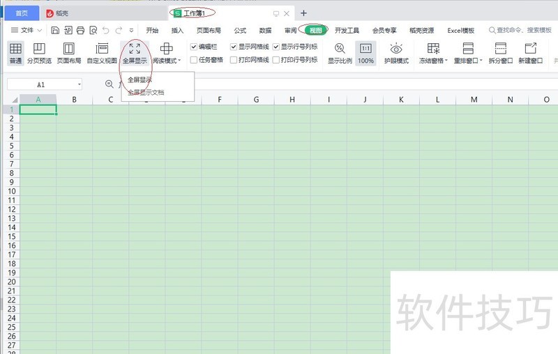 WPS office 2026表格如何设置全屏显示