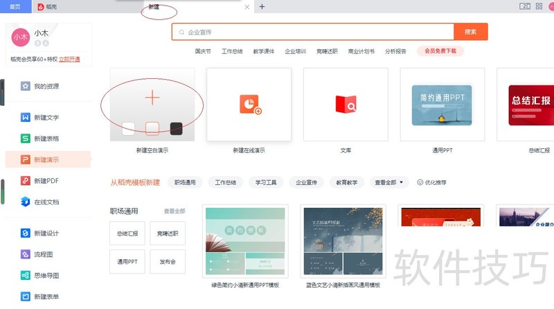2、 点击"新建空白演示"图标