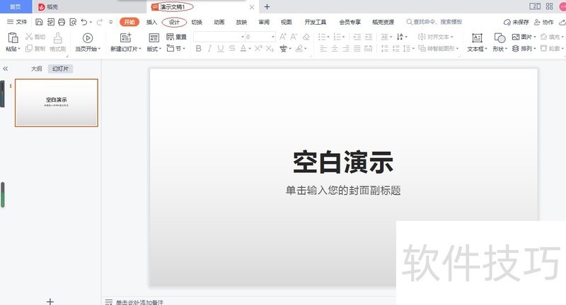 3、 选择功能区"设计"标签,如图所示