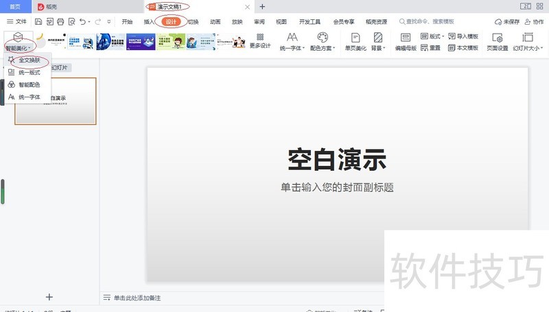 WPS office 2026演示文稿设置全文换肤
