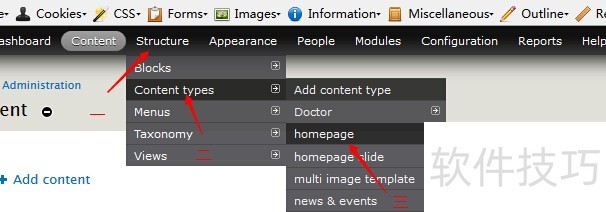 2、 进入content type 设置, 此文案例的Type为homepage,如下图