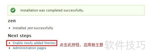 3、 安装完成后,点击“Enable newly added themes”按钮,启用新主题,并且跳转到外观管理界面。?