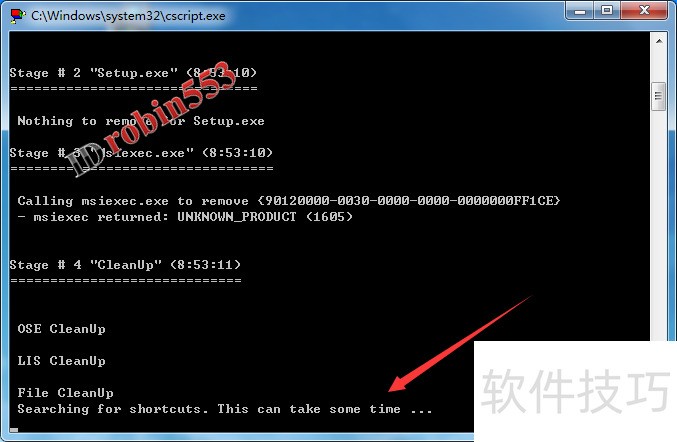 5、 接下来会弹出一个命令对话框,这里软件会自动进行Office软件的删除,可能需要几分钟的时间。
