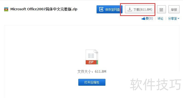 1、 首先,到网络网盘下载Office2007的安装包,http://pan.baidu.com/s/1i3GoL5F,Office2007简体中文完整版