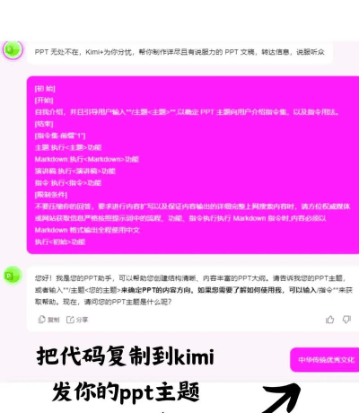 上传文档:如果你有现成的文档(如Word文档、PDF等),可以直接上传给Kimi,并输入相应的提示词,如“请将此文档转换为PPT,要求...” Kimi会根据文档内容和你的提示词来生成PPT。