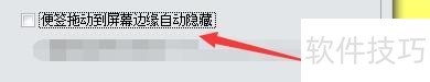 4、 在“其它”窗口中,将“便签拖动到屏幕边缘自动隐藏”勾选上