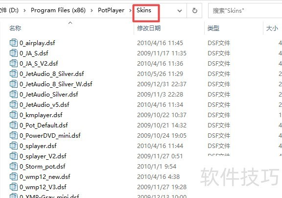 4、 然后将文件夹里的.dsf文件复制到skins这个文件夹里;?