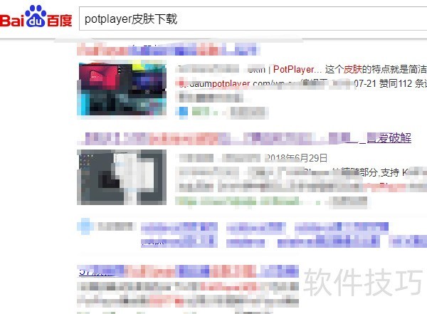 1、 网络搜索下载potplayer皮肤包;