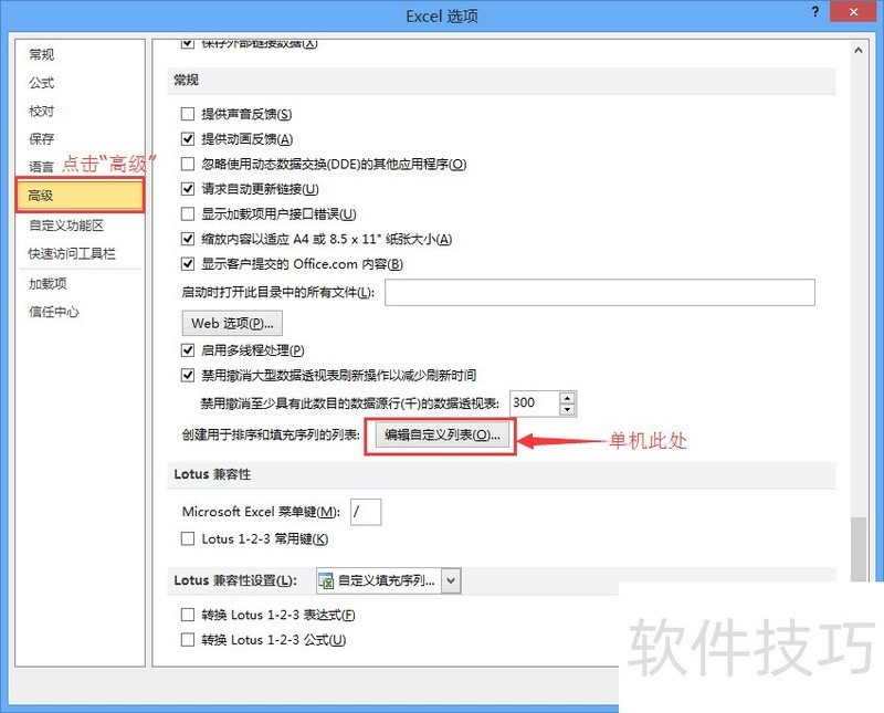 2、 3、我的office是2010版本的,自定义序列功能在:选择“文件“|”选项”|“高级”|“编辑自定义列表”如下图所示