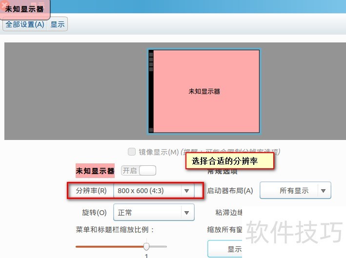 4、 在显示处选择相应的分辨率,本篇选择为800*600,然后点击右下角的应用。