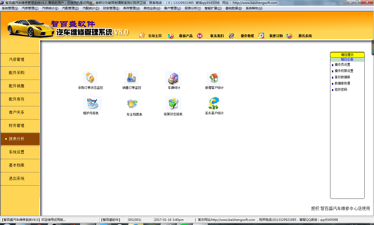 智百盛汽车维修管理软件 8.0