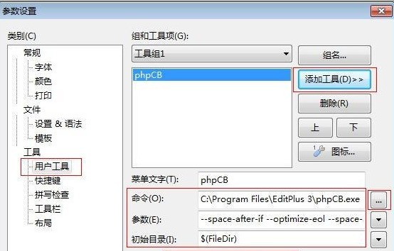 phpcodebeautifier又简称为phpCB,是一款命令行下的php代码格式化工具,能够有是你的php代码变得更加地漂亮。而且phpCodeBeautifier提供非常多的设置参数,用户可以根据个人要求得到想要的格式化结果。 phpCodeBeautifier使用方法: 用PHPCB为EditPlus添加PHP代码美化工具 可以集成在EditPlus或其它编辑器中的PHP代码格式化工具:phpCodeBeautifier,简称phpCB。 它能够美化PHP代码格式,让格式混乱的PHP代码变的很整齐。 安装好EditPlusr后,在菜单栏中,有【工具(T)】 -> 【配置用户工具】的菜单,打开过后,我们点击【用户工具】->【添加工具】 -> 【应用程序】. 菜单文本写:PHP代码美化;命令:选择 phpCB 的本机保存地址。 参数写: $(FilePath) 或下面的内容(命令为一行),具体请参考phpCodeBeautifier User Manual。 --space-after-if --optimize-eol --space-after-switch --space-after-while --space-before-start-angle-bracket --space-after-end-angle-bracket? --extra-padding-for-case-statement --glue-amperscore --change-shell-comment-to-double-slashes-comment --indent-with-tab --force-large-php-code-tag --force-true-false-null-contant-lowercase --comment-rendering-style PEAR --equal-align-position 50 --padding-char-count 1 "$(FilePath)" 初始目录填写:$(FileDir) 较后注意选择:“运行文本过滤”,下拉框中选择“替换”即可,phpCodeBeautifier截图1