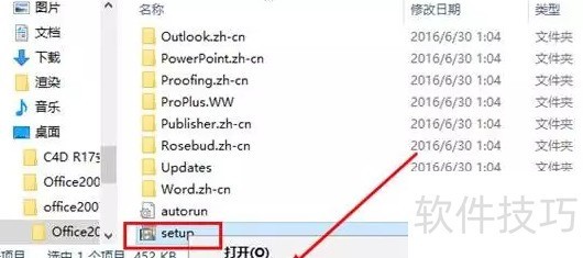 2、 鼠标右击打开Office2007软件安装包文件夹,右击setup选择,以管理员的身份运行