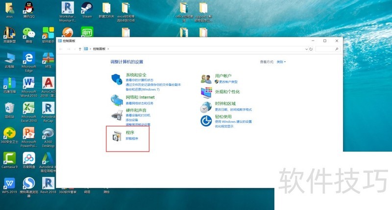 2、 在控制面板界面,找到界面中的“程序”功能,点击进入程序界面,在此界面中,找到“程序和功能”功能。