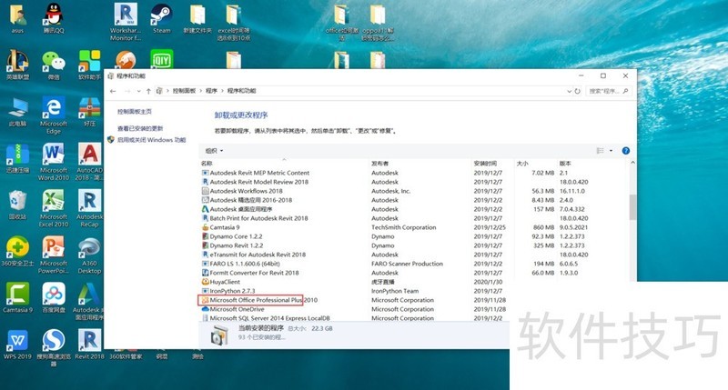 3、 点击进入程序与功能界面,在此界面中,找到需要卸载的软件——Microsoft Office,点击“Microsoft Office”软件,进入编辑界面。
