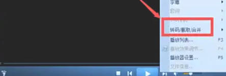 在已启动的QQ影音播放器中,于播放界面任意位置 鼠标右键单击,在弹出的菜单栏中选择 “转码/合并” 选项,随后点击 “打开” 进入功能界面。